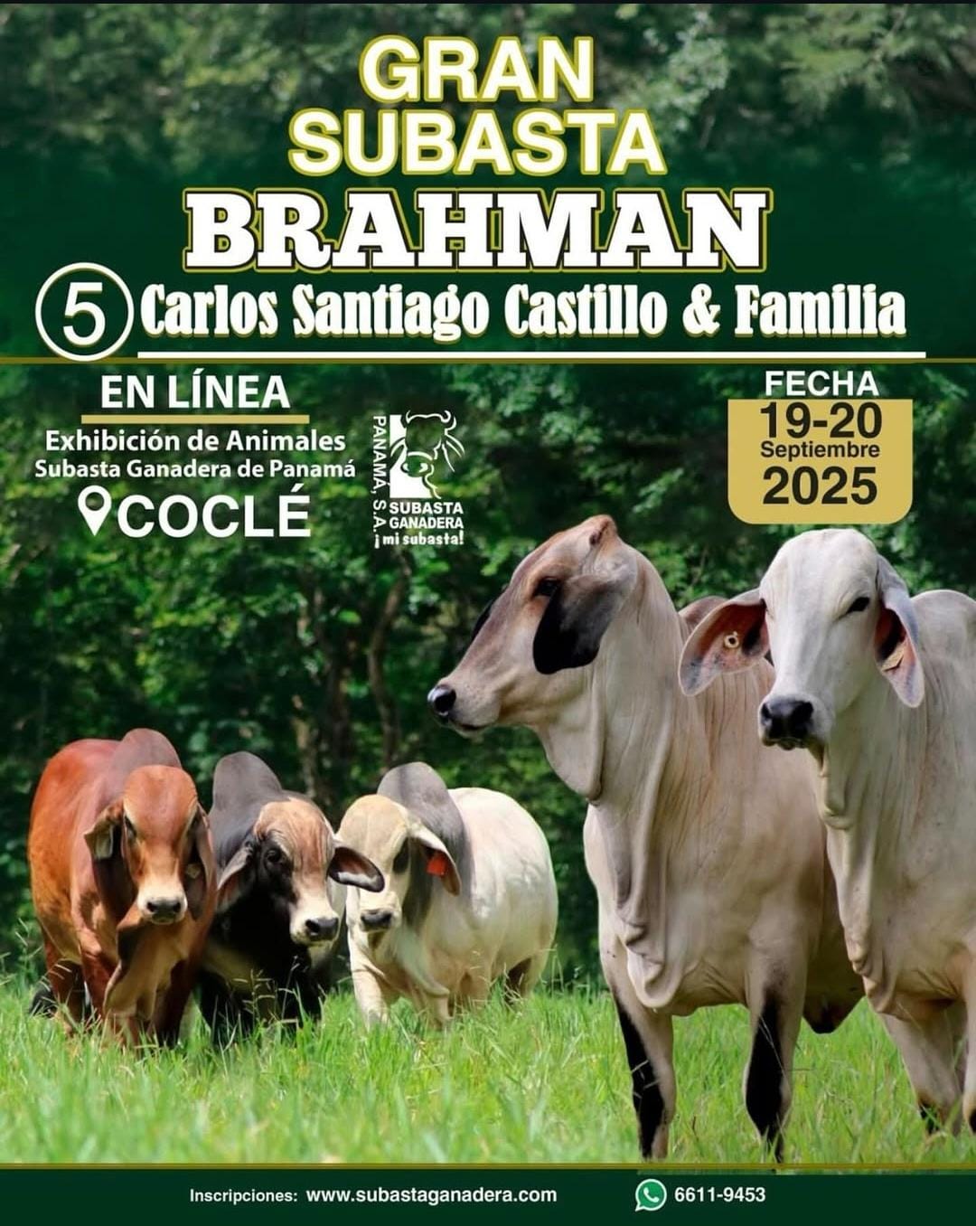 Gran Subasta Brahman – Carlos Santiago y Familia Subasta En Línea y Semi-presencial 🗓️ 19 y 20 de Agosto💻 Subasta En Línea y Semi presencial Términos y condicionesDescargar Catálogo 📍Exhibición de ejemplares en Subasta Ganadera de Panamá en CocléInscripciones:📞 6611-9453 / 6725-8147💻 www.subastaganadera.com Haz clic aquí para registrarte + Añadir Google Calendar + exportación iCal / Outlook Name * E-mail * Message Submit